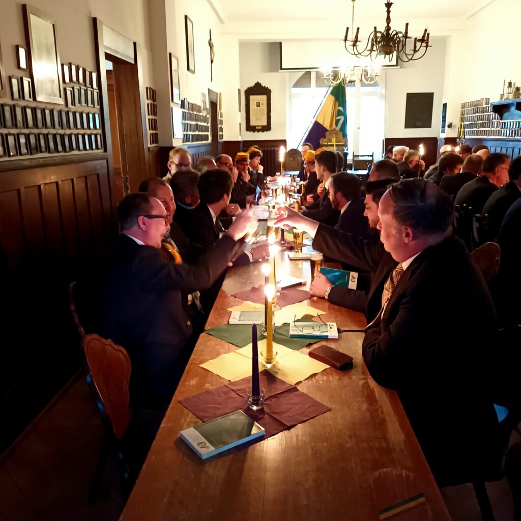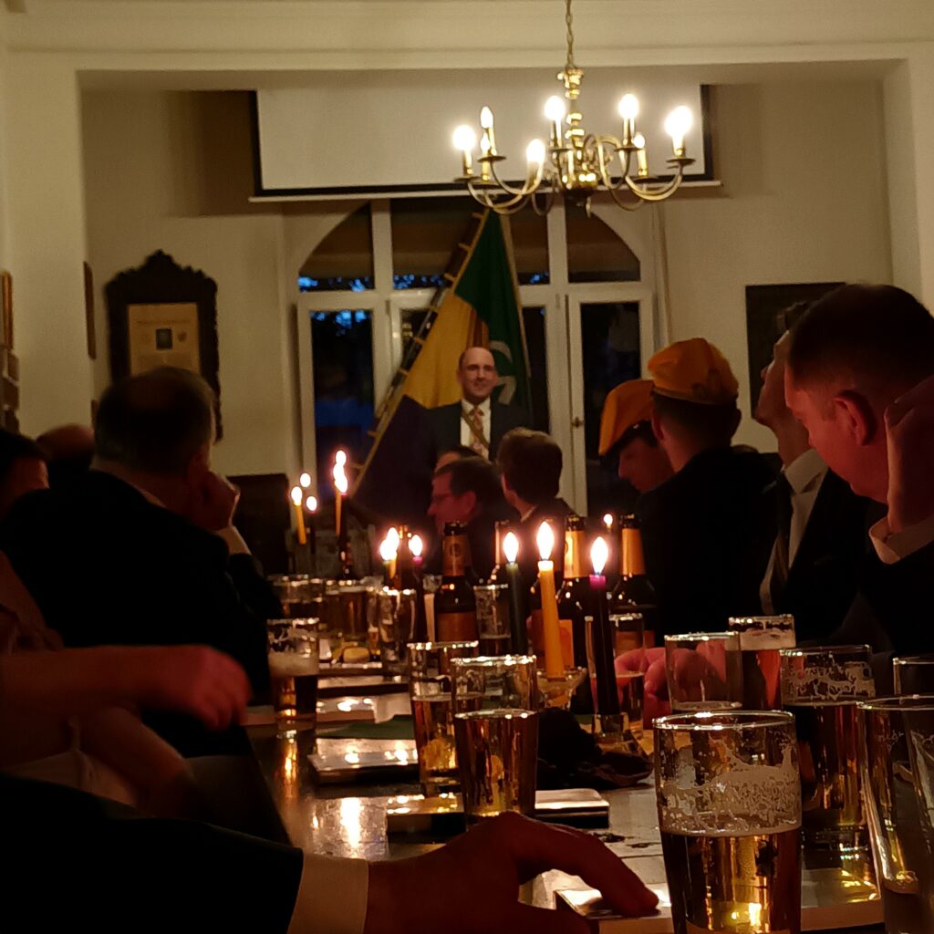 Der zweite Tag, der arminengemäß, selbst nach zahllosen Hopfenstärkungen am Vorabend nicht an Fahrt verlor, wurde bei Dämmerung mit der feuchtfröhlichen Festkneipe fortgesetzt. Ein weiterer Grund zur Freude war auch eine feierliche Burschung.