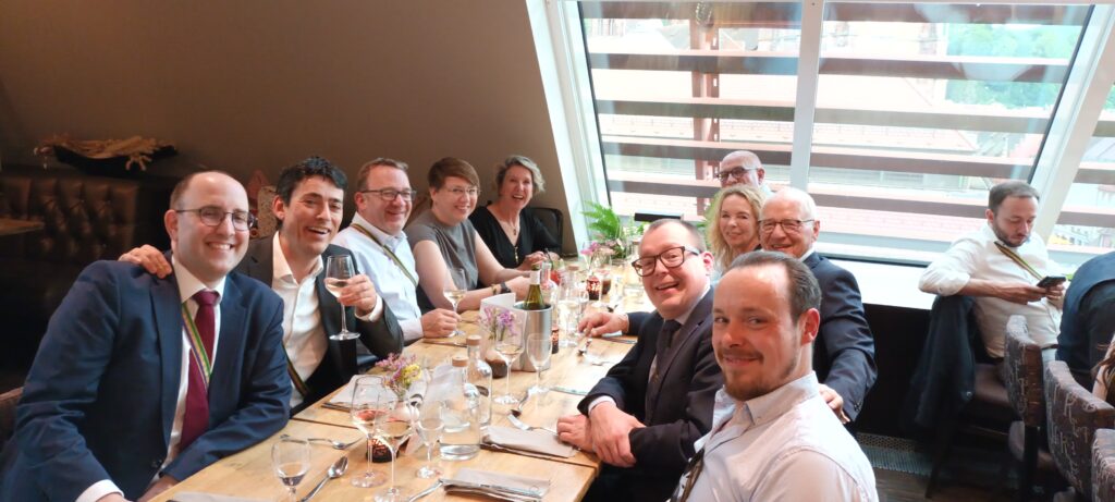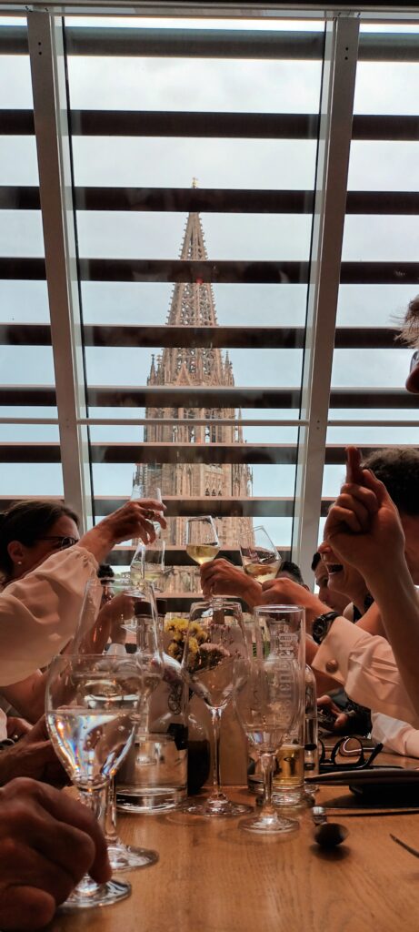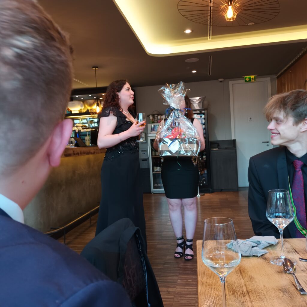 Auch wenn man jetzt schon fast dem Endspurt entgegenblickt war der dritte Tag, einer der schönsten. Über den Dächern von Freiburg durften wir in der Skajo ein 4 Gänge Menü genießen und ein Gastgeschenk e.h.v. Cimbria zu Konstanz entgegennehmen.