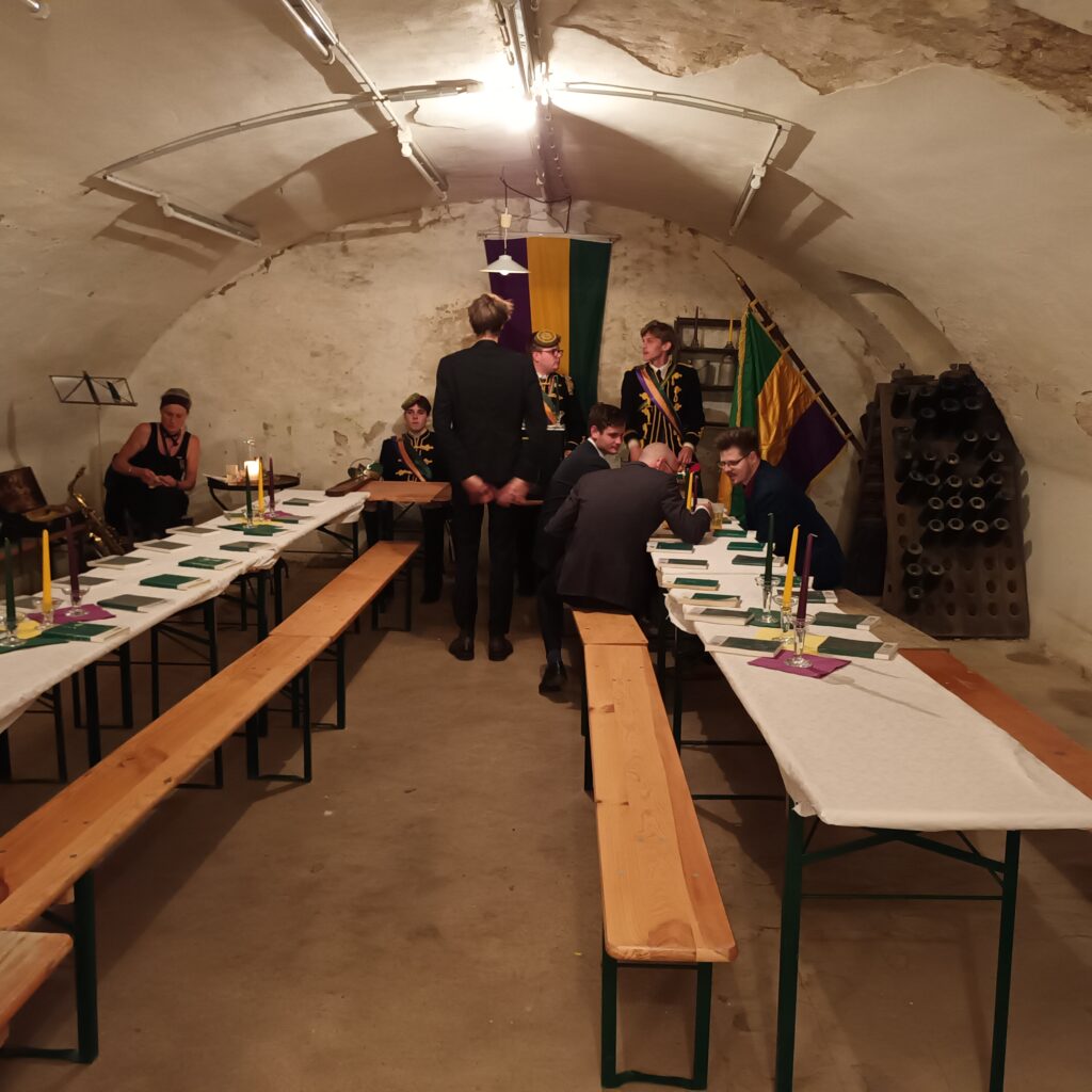 Dem Wetter geschuldet verschlug es die Corona in den liebevoll getauften “Atombunkerkneipsaal”, was aber nicht, wie der Name einen vermuten lässt, die Welt hat untergehen lassen. Die Akustik des Gewölbes verlieh dem feuchtfröhlichen Gesänge mit der Unterstützung von Gästen einer K.St.V. Neuenfels und einer K.D.St.V Hohenstaufen eine gewaltige Kraft, die sich dem Gewitter draußen entgegenstellte. Verstärkt wurde dies nur noch durch unsere lb. Couleurdame Vera, die sich als Biersaxophonistin bereitstellte. Unsere Aktivitas wurde zudem durch die feierliche Reception unseres Bundesbruders Krähmoh erweitert.