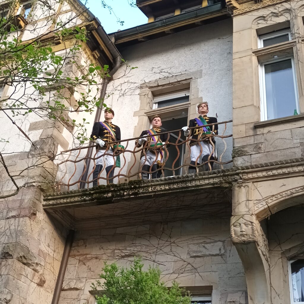Natürlich darf auch hier die Fahnenhissung nicht fehlen. Unsere Hochchargen haben dieses Semester deswegen arminengerecht mit dem Dreigestirn und zerschallenden Gläsern eingeleitet!